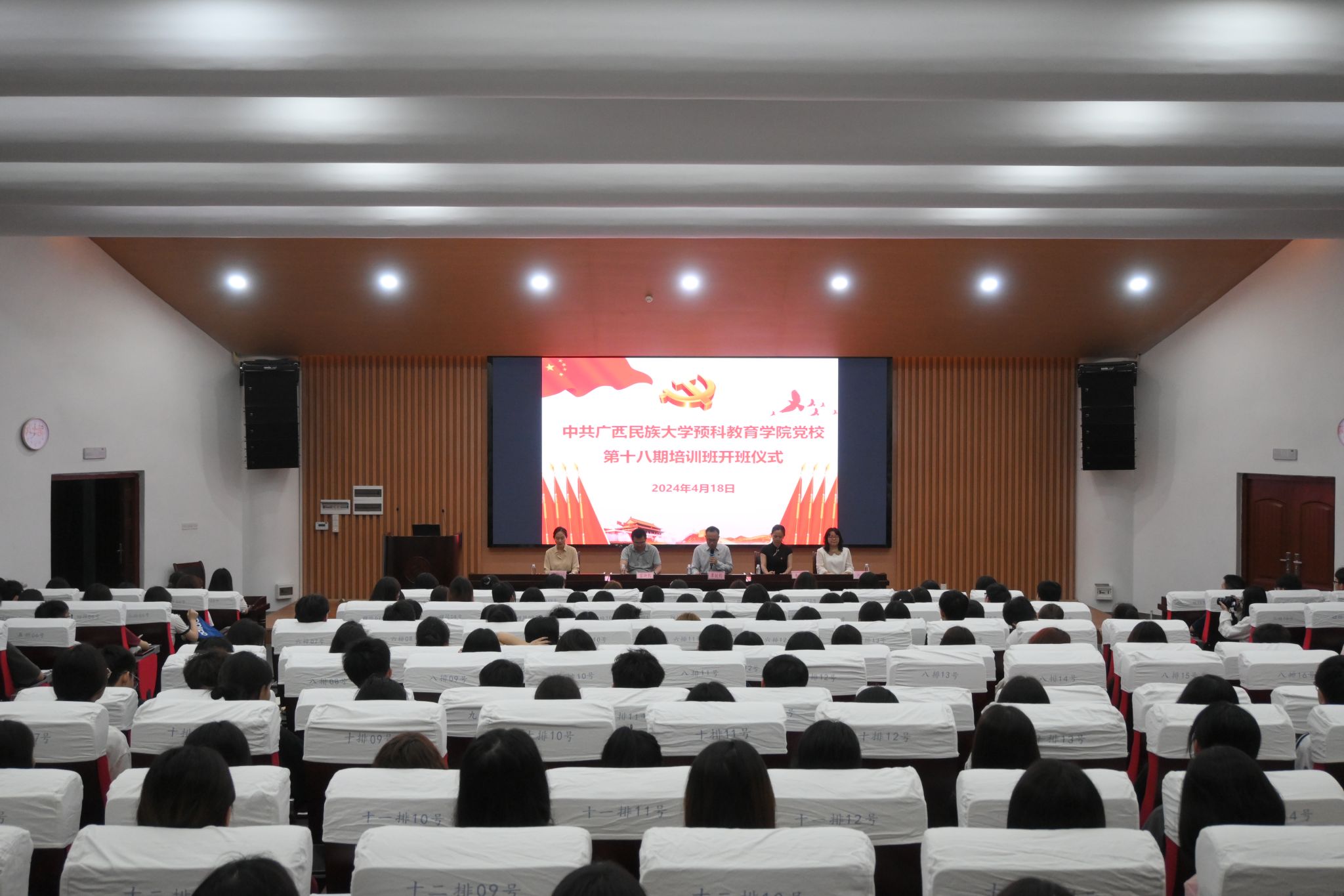 4月18日,FUN乐天使官方网站党委在武鸣校区椭圆形报告厅举行第十八期培训班开班仪式。学院党委书记覃锐钧,党委委员牟永红、容浒熙、雷芸,辅导员梁宇曦,以及学院全体入党积极分子参加开班仪式。
