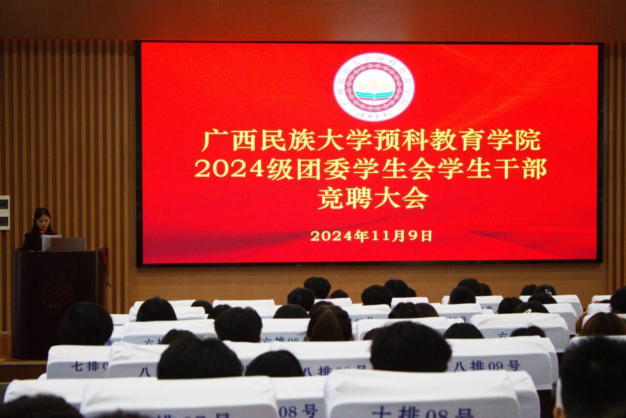 11月9日下午,FUN乐天使官方网站在椭圆报告厅开展2024级团委学生会和艺术团学生干部竞聘大会。学院团委书记魏言慈,辅导员苏钰、邓颖颍、韦玉妍出席本次大会,往届团委学生会和艺术团学生干部代表,各部门临时成员代表以及班级代表参加。