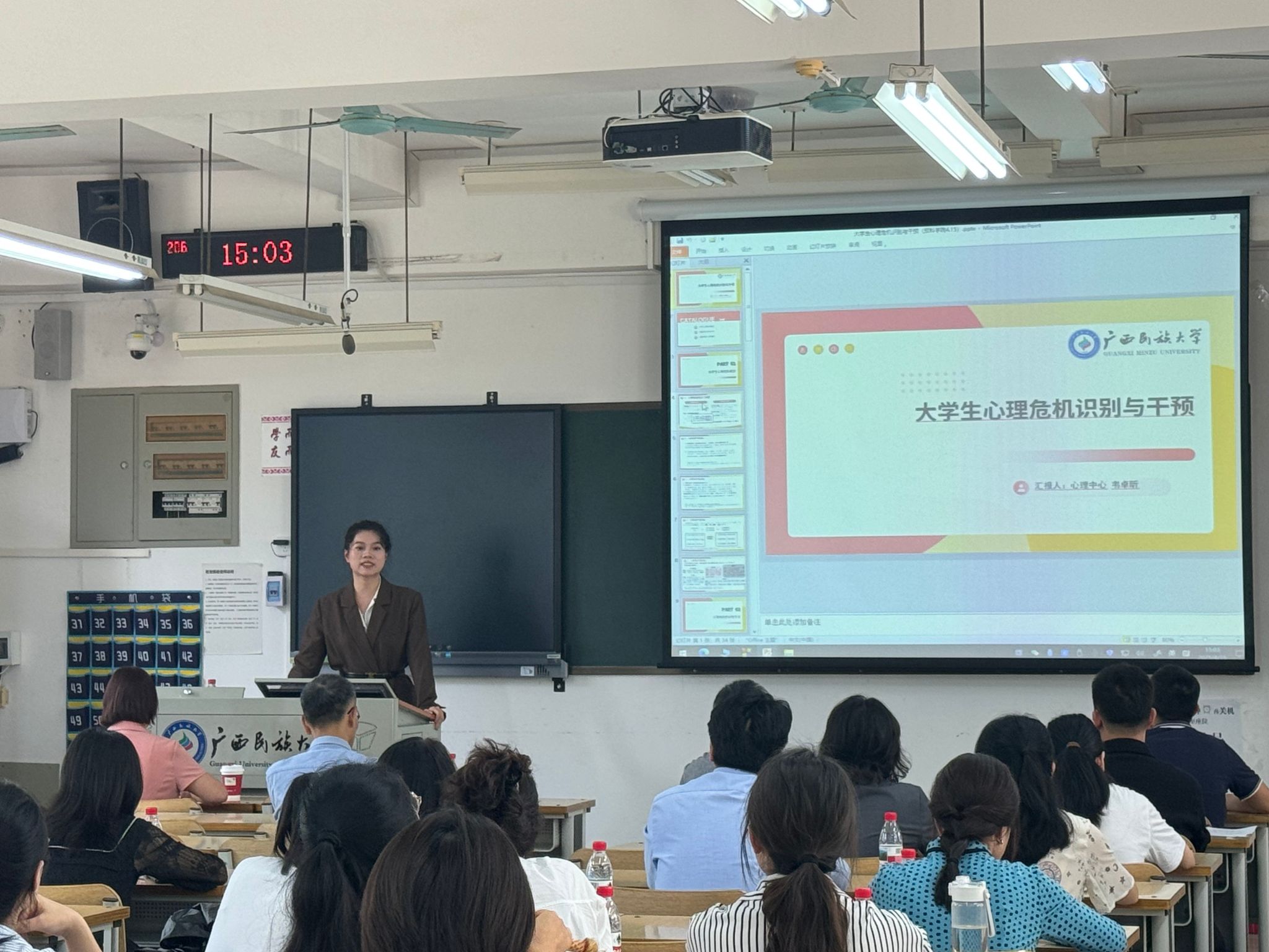 4月15日下午,FUN乐天使官方网站组织全体教职工在相思湖校区206教室开展大学生心理危机识别与干预培训,由学校心理中心教师韦卓昕主讲。