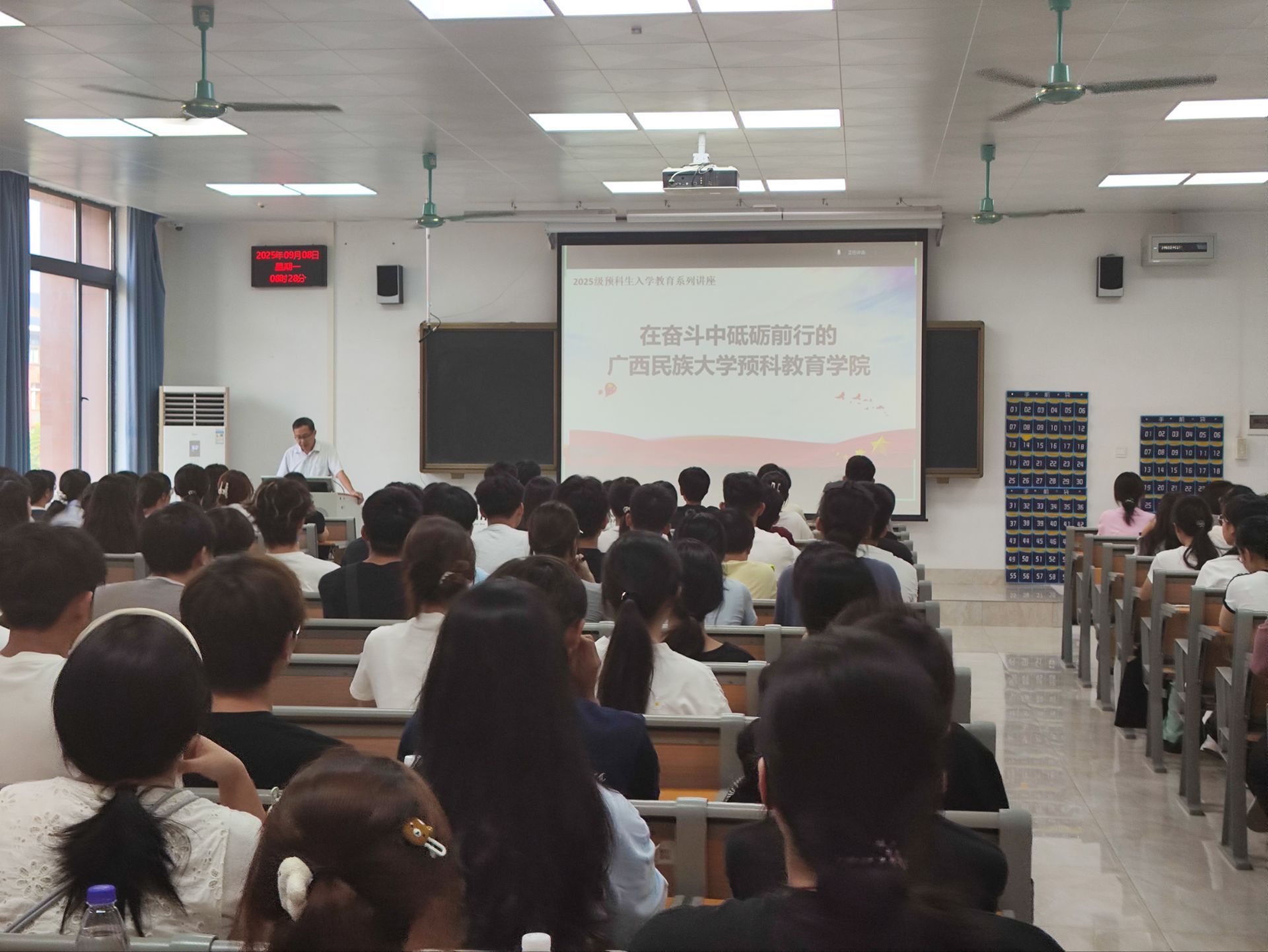 学院党委书记覃锐钧为本届新生开展了入党启蒙教育,向同学们讲述了中国共产党的光辉历程和党的基本知识,以及成为一名中国共产党党员的各项条件。覃书记在第二专题讲座中讲解了新时代党的民族工作会议精神,号召同学们以铸牢中华民族共同体意识为主线,贯穿在未来的学习生活全过程,共圆复兴梦想。王志文院长讲解了学院组织架构、教师组成、办学条件以及课程设置,帮助同学们尽快熟悉预科学习环境。吴晟志副书记从预科生适应大学生活切入,教诲同学们如何走好从成长到成才的人生路。刘红军副院长介绍了FUN乐天使官方网站的基本情况、编班基本规则、培训模式及目标、课程设置与教学管理,解读了学业预警和专业直升分流的注意事项,鼓励同学们以学业为重,为今后能够选择到理想的专业而努力。容浒熙副处长向新生们介绍了预科教育的政策性、学院的发展历程和取得的各项荣誉。团委书记魏言慈和辅导员们通过系列讲座分别向同学们介绍了综合素质测评考核标准、团委学生会构成情况、考勤与学风建设等教育管理相关内容,帮助同学们进一步了解各项相关的管理制度。