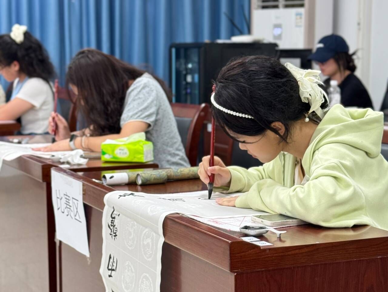 决赛分书法、绘画两大类,书法细分为软笔与硬笔。比赛以“二十四节气”或“春夏秋冬的季变化”为主题,选手们围绕主题挥毫泼墨、尽情创作。比赛现场,硬笔书法作品刚劲有力,彰显文化底蕴;软笔书法柔美灵动,传承千年风雅;绘画作品笔触细腻,勾勒山河壮丽。选手们以笔为媒、以墨传情,将对传统文化的热爱融入作品,展现很高的艺术水准。评分环节,音乐基地和创舞协会同学带来精彩表演,将现场气氛推向高潮。评委们秉持公平公正原则,从笔法、结构、美感及主题契合度等多维度综合评估作品。最终,三名学生获一等奖,六名学生获二等奖,九名学生获三等奖,十六名学生获优秀奖。